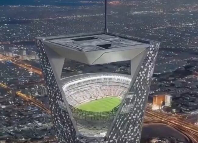 El recinto estará situado literalmente sobre el techo de un edificio multifuncional, en pleno núcleo de un posible nuevo distrito saudí. La altitud de la estructura, estimada en 350 metros, sobrepasa incluso la cima de The Shard en Londres, que es el edificio más alto del Reino Unido y se eleva hasta los 310 metros. De ese modo, la comparación reafirma la dimensión ambiciosa del concepto y subraya el interés saudí de distinguirse en el escenario global a través de propuestas espectaculares para el Mundial.