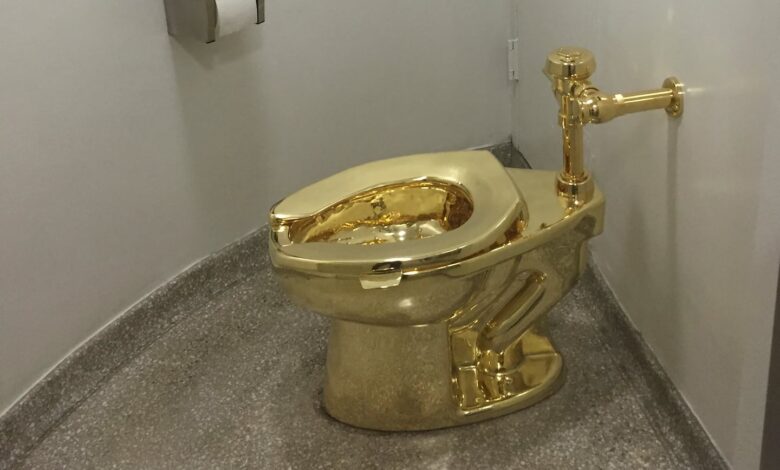 El próximo 18 de noviembre empieza la puja por “América”; un retrete de oro macizo que se expuso en el baño público del Museo Guggenheim de Nueva York. Si se pagaron más de US$ 6 millones por su banana, puede llegar a precios astronómicos.