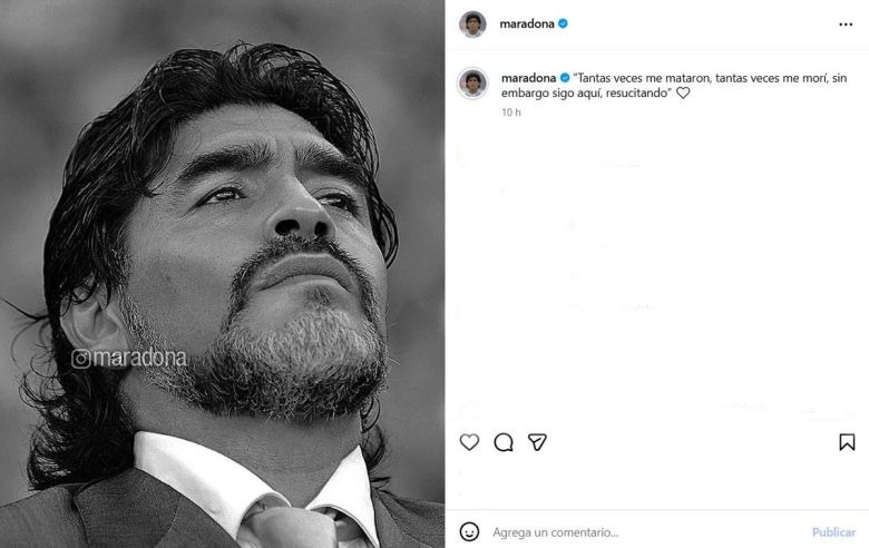 La publicación puso fin a un año entero de silencio digital: la última vez que la cuenta había tenido actividad en el feed fue el 25 de noviembre de 2024, cuando se cumplió el cuarto aniversario de su fallecimiento. Aquel post mostraba a Diego con la camiseta de la Selección argentina, conduciendo la pelota con su zurda eterna, acompañado de la frase “Te amamos (1960-∞)” y la palabra “Justicia”.