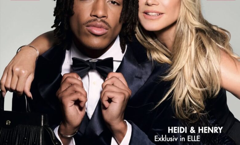 La top model alemana posó por primera vez con su hijo Henry Samuel, fruto de su matrimonio con el artista inglés Seal. Henry, de 20 años, ya debutó en la Semana de la Moda de París y ahora se unió a su mamá para una icónica tapa de la revista Elle Alemania del próximo mes de enero.